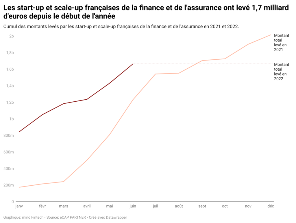 Au deuxième trimestre, 33 start-up et scale-up françaises de la finance et de l’assurance ont levé des fonds, pour un montant total de 479 millions d’euros, soit une baisse de moitié par rapport aux 988 millions levés par 32 sociétés à la même époque l’an dernier, selon le baromètre trimestriel réalisé par mind Fintech, en partenariat avec eCAP PARTNERS.