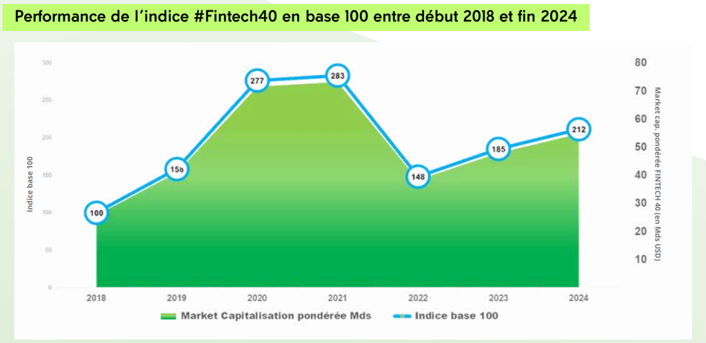 Accueil > Financement > En 2024, les valorisations des fintech cotées ont augmenté En 2024, les valorisations des fintech cotées ont augmenté Par Caroline Soutarson. Publié le 06 mars 2025 à 16h48 - Mis à jour le 07 avril 2025 à 12h09 Ressources Dans la nouvelle édition de son rapport annuel sur les fintech cotées, l’Observatoire de la Fintech, en partenariat avec eToro, analyse les performances de 40 fintech cotées dans le monde. Après l’éclatement de la bulle fintech en 2022, les valorisations remontent doucement la pente (+14 % en 2024), avec une capitalisation boursière totale de 843 milliards de dollars. Enregistrant un chiffre d’affaires de 165 milliards de dollars au global, les 40 sociétés analysées ont “une valorisation moyenne de 5 fois le chiffre d’affaires annuel. Ce multiple peut aller jusqu’à fois 20 dans le paiement et jusqu’à fois 18 fois dans le middle et le back-office”, détaille le rapport. Source : L’Observatoire de la fintech À noter : Dans le non coté aussi, les valorisations reprennent des couleurs, comme le montre la récente valorisation de 13 milliards de dollars obtenue par Ramp, une solution américaine de gestion tout-en-un des dépenses professionnelles, après plusieurs down rounds. Caroline Soutarson indicateurintroduction en Bourse Besoin d’informations complémentaires ? Contactez le service d’études à la demande de mind À lire Le market maker crypto Flowdesk lève 52 millions de dollars, dont 10 millions en dette auprès de BlackRock Ramp se valorise à 13 milliards de dollars Revolut encouragé à ouvrir une vente secondaire le valorisant à 60 milliards de dollars Rentable, Stripe se valorise à 91,5 milliards de dollars lors d’une opération secondaire L'oeil du VC Franco Danesi : “Le deuxième fonds de Korelya sera investi au quart dans des fintech” Rapyd cherche à lever 300 millions de dollars pour racheter un PSP