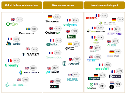 Accueil > Services bancaires > Fintech vertes : ces acteurs BtoC qui proposent des alternatives aux produits financiers traditionnels Fintech vertes : ces acteurs BtoC qui proposent des alternatives aux produits financiers traditionnels Solène Brébant, analyste d'investissement chez BlackFin Tech, a enquêté sur l'émergence des fintech vertes, ces start-up qui proposent des alternatives vertes aux solutions financières existantes. Dans un premier volet, elle se penche sur les acteurs positionnés en BtoC. Par Contribution externe. Publié le 13 octobre 2021 à 11h23 - Mis à jour le 12 avril 2022 à 18h22 Ressources Le système financier traditionnel est fortement critiqué aujourd’hui pour sa part de responsabilité dans le réchauffement climatique. Selon une étude menée par Oxfam France, l’empreinte carbone des grandes banques françaises représente près de 8 fois les émissions de gaz à effet de serre de la France entière. A ce rythme, elles nous emmènent vers un réchauffement à +4°C d’ici à 2100, loin de l’objectif de 1,5°C recommandé par les scientifiques. En confiant nos économies à ces banques, nous, consommateurs, participons donc indirectement aux réchauffement climatique. Aujourd’hui, il y a une réelle prise de conscience environnementale, encore plus forte chez les millenials – qui représentent 1,8 milliards de personnes dans le monde – qui se sentent de plus en plus concernés et manifestent un appétit croissant pour de nouvelles solutions financières respectueuses de l’environnement et compatibles avec leurs engagements. En tant que fonds d’investissement spécialisé dans le secteur financier, notre mission chez BlackFin est de comprendre ces tendances pour mieux façonner le futur des services financiers. En conséquence, il nous était impossible de passer à côté d’un tel mouvement de fond. Plus encore, nous avons la responsabilité de financer des projets qui esquissent un futur meilleur et investir dans la fintech verte est un moyen d’atteindre cet objectif. Dans ce premier volet BtoC, nous avons identifié trois grandes catégories d’acteurs : Les solutions de suivi et calcul de l’empreinte carbone; Les néobanques vertes; Et les plateformes d’investissement à impact. Si cette catégorisation permet de bien comprendre les différents types de services offerts, elle trouve sa limite dans le fait que certains acteurs offrent plusieurs services à la fois. Par exemple, il arrive que certaines néobanques proposent également un outil de calcul de l’empreinte carbone ou proposent des recommandations d’investissement à impact. Nous avons donc décortiqué ces trois catégories, l’une après l’autre, afin de bien comprendre les opportunités de marché respectives et les défis auxquels ces solutions font face. Cartographie réalisée par BlackFin Tech Les solutions de calcul de l’empreinte carbone, pour aider le consommateur à limiter son impact environnemental En accédant aux données bancaires des consommateurs via l’open banking, ces solutions peuvent quantifier l’émission de carbone associée à chacune des transactions de leurs clients en se rapportant à la réglementation Taxonomie, qui fournit une nomenclature des différentes activités économiques. Qui sont-elles ? Des solutions comme Greenly ou Doconomy se sont d’abord positionnées en BtoC avant de proposer également une offre B2B. Elles permettent aux consommateurs de suivre au jour le jour leurs émissions de carbone et fournissent un scoring de leur empreinte carbone – parfois plusieurs en fonction des différentes catégories de dépenses (transport, loisir, alimentation, etc.). Cependant, il est difficile pour ces solutions d’assurer un scoring précis, étant donné qu’elles ont accès aux transactions globales mais pas aux détails des dépenses. Prenez une transaction au supermarché : il est impossible d’avoir accès au détail du ticket de caisse automatiquement, et donc d’avoir suffisamment de granularité sur les émissions de carbone liées aux achats du consommateur (viande vs. légume, plastique vs. carton, etc.). Afin de pallier à ce problème, ces solutions posent souvent des questions à l’aide de chatbots sur les habitudes de vie de leurs clients afin de pouvoir appliquer des pourcentages sur certains types de dépenses. Par exemple, sur une dépense en supermarché, on pourra vous demander si vous consommez beaucoup de viande ou non, ou si vous achetez des emballages en carton ou en plastique et appliquer un certain pourcentage sur l’ensemble de la note. Quels sont leurs challenges ? L’une des premières difficultés est celle de la précision du scoring, comme déjà évoqué. Un autre challenge a trait à la monétisation : ces solutions peinent à trouver un business model viable tant qu’elles sont proposées en produit standalone. C’est ce qui explique que certaines d’entre elles ont rajouté une autre brique produit (compte en banque, recommandation d’offsetting, etc.) tandis que d’autres ont basculé vers un modèle BtoB ou BtoBtoC. A titre d’exemple, Doconomy s’est récemment associé à Mastercard pour développer une suite d’outils à destination des détenteurs de carte bancaire afin qu’ils aient une vision de l’empreinte carbone liée à leurs dépenses. La fintech a également conclu un partenariat avec Klarna suivant un principe similaire. On comprend facilement en quoi ces acteurs peuvent apporter de la valeur à d’autres fintech et à des corporate, en leur permettant notamment de satisfaire les nouvelles attentes de leurs clients. D’autres exemples de fintech qui ont changé de modèle… C’est le cas de Carbo ou de Greenly, solutions de calcul de l’empreinte carbone initialement positionnées sur un modèle BtoC qui ont décidé d’adresser des clients BtoB. Aller sur un modèle BtoB permet dans certains cas d’avoir des “unit economics” plus sain