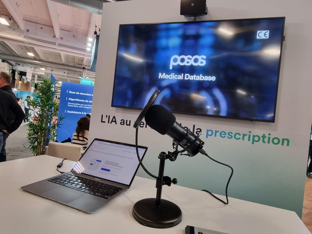 Pour trancher avec les copilotes de ses concurrents, Posos préfère miser sur la dictée vocale basée sur l’IA pour parler aux médecins prescripteurs. Sur le stand de Posos à SantExpo, les visiteurs ont pu tester sa dernière innovation basée sur un socle technologique de Nuance, expert américain de l’IA conversationnelle. Le logiciel, encore au stade de prototype, pourrait permettre de compléter la retranscription automatique pendant les consultations.