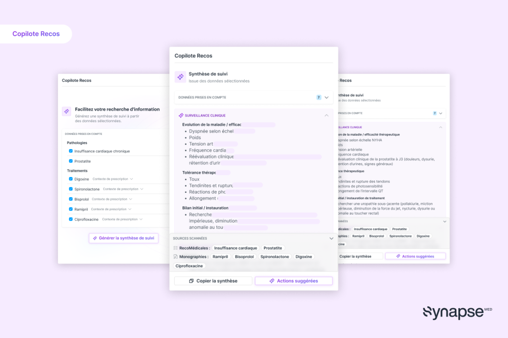 Aperçu de l’outil Copilote Recos de Synapse Medicine