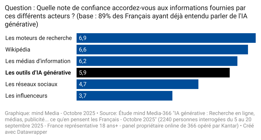 IA générative : 39% des utilisateurs de 18-24 ans y recherchent des actualités, selon notre étude mind Media-366 Relations avec les plateformes Transformation & Innovations Les usages de l’IA générative sont variés, mais des tendances profondes émergent. Ainsi, 38% des recherches réalisées par les Français utilisant des outils d’IA (63% des Français) sont liées à l’organisation quotidienne (conseils pratiques, recettes…), 29% à du divertissement et autant à des recherches liées à la santé,…