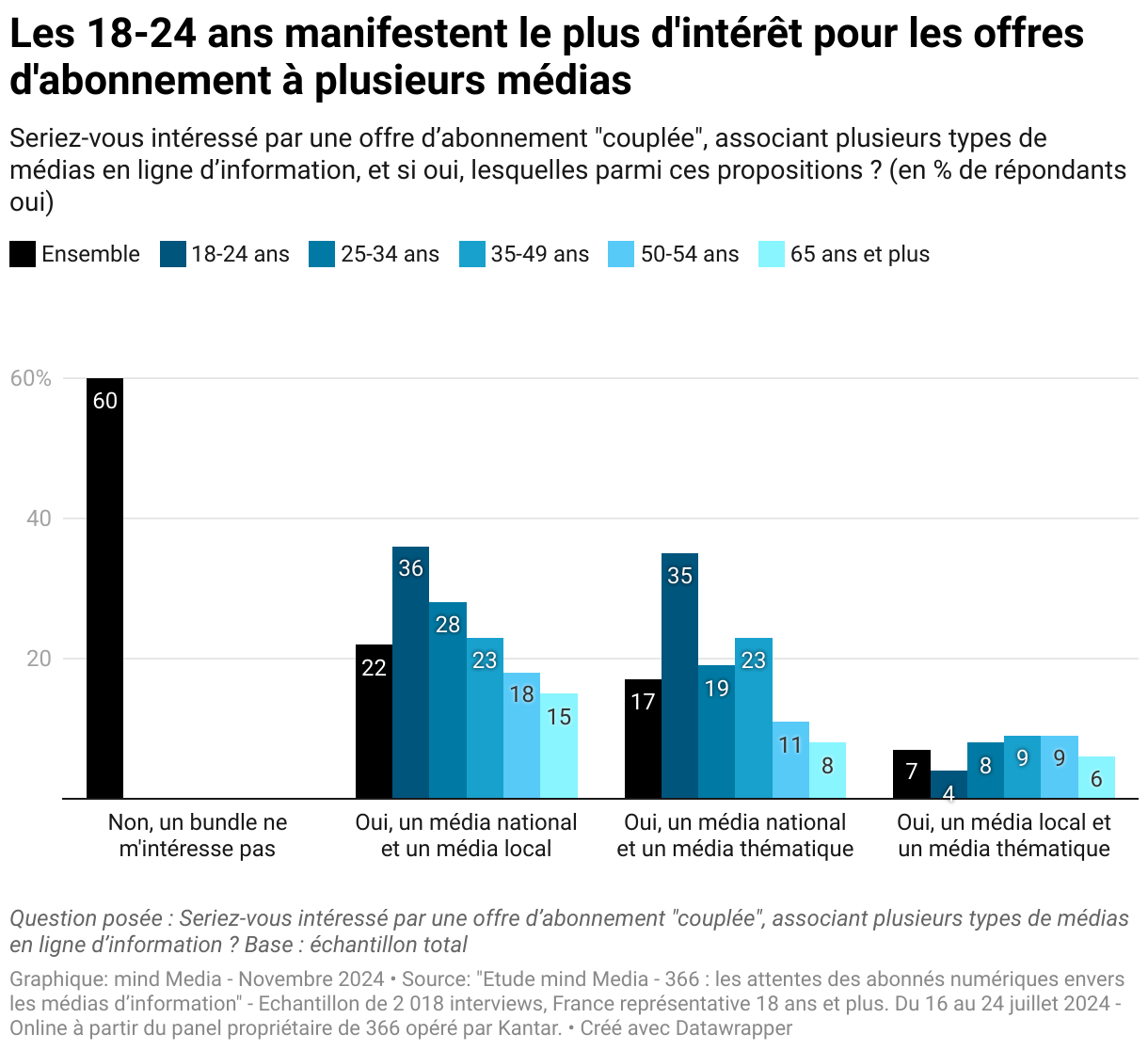 Accueil > Médias & Audiovisuel > Des médias en ligne indépendants tentent à nouveau le bundle Des médias en ligne indépendants tentent à nouveau le bundle Arrêt sur Images a fédéré six autres éditeurs (Les Jours, Politis, Médiacités...) pour relancer leurs souscriptions en proposant cet automne un abonnement groupé. Par Jean-Michel De Marchi. Publié le 04 juin 2025 à 17h44 - Mis à jour le 06 juin 2025 à 15h51 Ressources Sept médias en ligne indépendants français travaillent au lancement, en septembre, d’une offre d’abonnement groupé, a annoncé mardi 3 juin Daniel Schneidermann, fondateur et journaliste à Arrêt sur Images, qui pilote le projet. Le groupement rassemble, au lancement, Arrêt sur Images, Reflets, Les Jours, Next, Hors-Série, Politis et Mediacités. “Le portail proposera l’achat d’une licence globale (tous les médias), à tarif préférentiel et mettra chaque jour en avant le meilleur des médias partenaires”, indique-t-il sur une plateforme dédiée déjà en ligne. Le tarif n’est pas mentionné. L’initiative bénéficie d’un prêt de 60 000 euros du Fonds pour une presse libre, lancé par Mediapart. Un précédent qui a échoué Le projet est baptisé La Presse Libre, comme l’était un projet similaire créé il y a dix ans. La presse en ligne indépendante a en effet déjà développé plusieurs offres de ce type depuis le milieu des années 2010, souvent entre deux titres. À l’initiative du site sur les technologies Next INpact, le GIE La Presse Libre s’était constitué en 2016 avec plus d’ambitions : il associait Next INpact, Arrêt sur Images et Les Jours pour proposer une plateforme de commercialisation d’offres d’abonnement groupé à plusieurs médias en ligne indépendants (Next INpact, Arrêt sur Images, Les Jours, Alternatives Économiques, Gamekult, Hors Série…). Le projet n’a pas été concluant et a périclité, jusqu’à prendre fin officiellement en 2022. L’objectif des bundles est de répondre au tassement des souscriptions d’abonnements en ligne constaté chez des médias, et en particulier chez les médias indépendants. Le bundle suscite un certain intérêt auprès des lecteurs : selon une étude sur les attentes et usages des abonnés numériques, publiée dans nos colonnes à l’automne 2024, réalisée par mind Media et 366 via Kantar auprès de 2 018 personnes, 40 % des Français se disent intéressés par des abonnements groupés à la presse. Mais pour être efficace, il nécessite un effort marketing important et des offres très complémentaires, au risque de créer un effet d’aubaine pour le lectorat et/ou de mettre en danger l’ARPU. Cette nouvelle tentative apparait donc ambitieuse, a fortiori avec une offre collective unique à sept médias – comme le projet le présente -, qui devrait alors être commercialisée plusieurs dizaines d’euros par mois. Jean-Michel De Marchi Abonnements numériquesAlliances éditeursSites d'actualité Besoin d’informations complémentaires ? Contactez le service d’études à la demande de mind À lire Analyses Dossiers Etude mind Media - 366 (1/5) : Les attentes des abonnés numériques envers les médias d’information Dossiers Etude mind Media - 366 (4/5) : Les bundles sont-ils l’avenir des abonnements numériques pour les médias ? Dossiers Etude mind Media - 366 (2/5) : Les usages des abonnés numériques de la PQR Le classement des éditeurs français qui ont le plus d'abonnés purs numériques Dossiers Comment les médias font face à la fragmentation des plateformes sociales Google déploie en France RRM, sa suite complète de marketing et de monétisation pour les médias Le trafic des médias de plus en plus dépendant de Google Media.Figaro s’appuie sur l’IA de Google pour développer un outil d’amélioration du media planning Les diversifications tirent à la hausse l'activité du groupe Figaro Dossiers Panorama 2024 des abonnements aux médias en ligne : un marché déjà mature ? Chez Mediapart aussi, le lectorat vieillit Dossiers Panorama 2025 des outils de text-to-speech pour les médias en France Dossiers Etude mind Media - 366 (5/5) : comment convaincre les lecteurs de s’abonner aux médias ? Dossiers Etude mind Media - 366 (3/5) : Le comportement et les attentes des jeunes envers les abonnements numériques essentiels Nos synthèses et chiffres sur les principales thématiques du marché Les mutations du search à l'ère de l'IA générative L'application inaboutie de la loi sur les droits voisins Google vs DOJ : tout ce qu'il faut savoir sur le procès qui pourrait redéfinir l'adtech L’essentiel sur les identifiants publicitaires La transformation du marché publicitaire en 2024 2023 : le marché publicitaire doit se préparer à la fin du tracking utilisateur Comment l’intelligence artificielle générative bouleverse les médias Les enjeux réglementaires des médias en 2023 analyses Les articles d'approfondissement réalisés par la rédaction L’Apig et le SEPM fustigent le discours de Google concernant l’absence de l’AI Mode en France L'IA tient-elle ses promesses dans le marketing et l'achat média ? L’IA dans les rédactions : les exemples de l’AFP, Ouest-France et Humanoid Synthèse de l'étude mind Media-366 sur l’IA générative appliquée à la recherche, aux médias et à la publicité INFO MIND MEDIA - Yahoo lance un plan social en France pour se séparer de son équipe éditoriale Baromètre RECMA - mind Media : le bilan des gains de budgets en France depuis début 2025 Heikel Manai (France Télévisions) : “En matière d’IT, un dogmatisme 100% européen serait contre-productif” INFO MIND MEDIA - L’Équipe gagne son match judiciaire contre Fedcom Media CGV 2026 des régies TV : un pas supplémentaire vers la simplification du trading Mara Negri (EBX) : “Notre objectif est de proposer des inventaires BVOD et CTV dans l’ensemble des pays européens" data Les barom